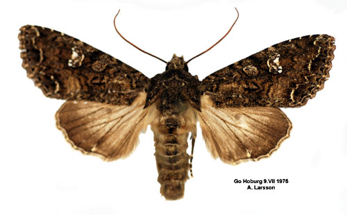 Descriere. Adultul insectei are aripile de culoare brun – cenusii fiind prevazute cu dungi transversale si pete mai inchise sau mai deschise la culoare, anvergura aripilor de 40 – 50 mm. Aripile posterioare sunt de culoare cenusii. La depunere, oul are culoarea alb – lucioasa iar inainte de a ecloza devine cenusiu – inchis. Larva are o lungime a corpului de 40 – 50 mm. culoare fiind de la brun – cenusiu la verde – deschis, cu 3 dungi galbene pe partea dorsala. Pupa are aproximativ 20 – 40 mm si este de culoare brun – roscata.