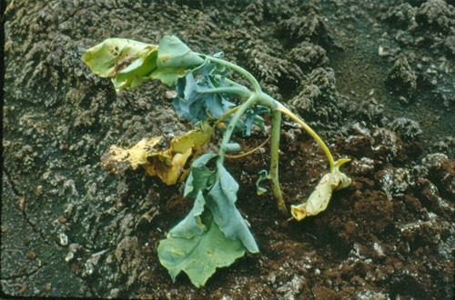 Plante gazda si mod de atac. Larvele insectei ataca diferite plante din familia cruciferelor precum: conopida, varza, ridichi, rapita, mustar etc. Actiunea larvelor se produce prin patrunderea acestora pe sub epiderma radacinilor si rod galerii. Plantele ce sunt supuse atacului acestor muste, se opresc din dezvoltare, frunzele se ofilesc si se usuca in timp, smulgandu-se usor din sol din cauza radacinilor distruse. Pagubele cele mai insemnate se inregistreaza in randul plantelor tinere.