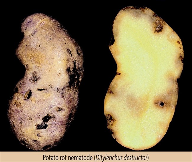 Combatere. Este nevoie de un asolament rational si anume revenirea cartofului pe aceeasi sola dupa 3 – 4 ani , intr-o rotatie care trebuie sa cuprinda crulturi precum: fasolea, porumbul, mazarea, floarea soarelui. Este necesara deasemenea o analiza de sol care sa ateste lipsa nematodului in sol, inainte ca acesta sa fie plantat. Tuberculii infestati trebuie eliminati inainte de plantare. O alta necesitate este reprezentata de adunarea si distrugerea resturilor de plante dupa recoltare si efectuarea de araturi adanci.